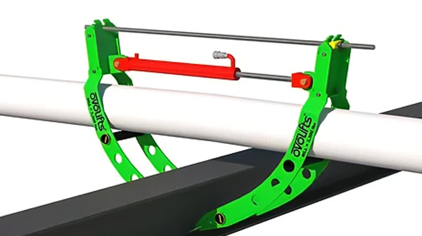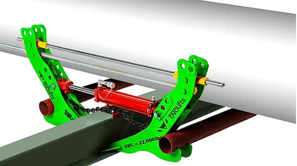 It can lift single or multiple pipes from ground-level supports or pipe racks.